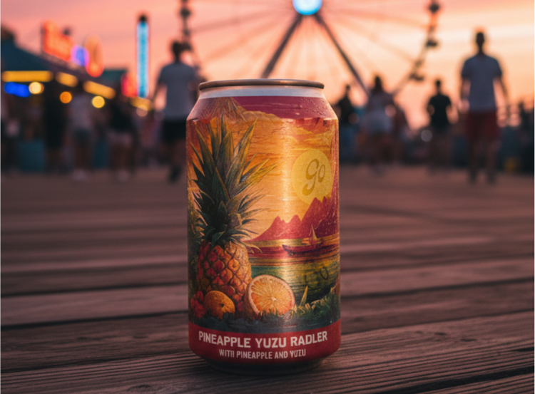 It’s a radler, a beer cocktail style traditionally made by blending beer with fruit. This version combines a classic lager with pineapple and yuzu for a slightly sweet, citrus-forward profile.